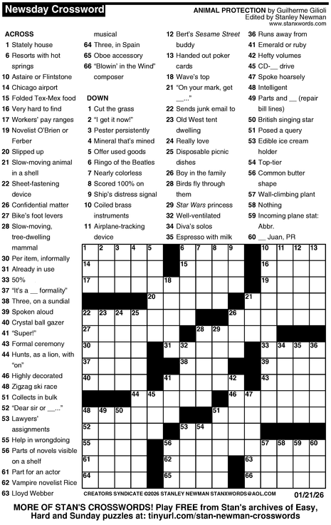 Crossword for 1/21/2026