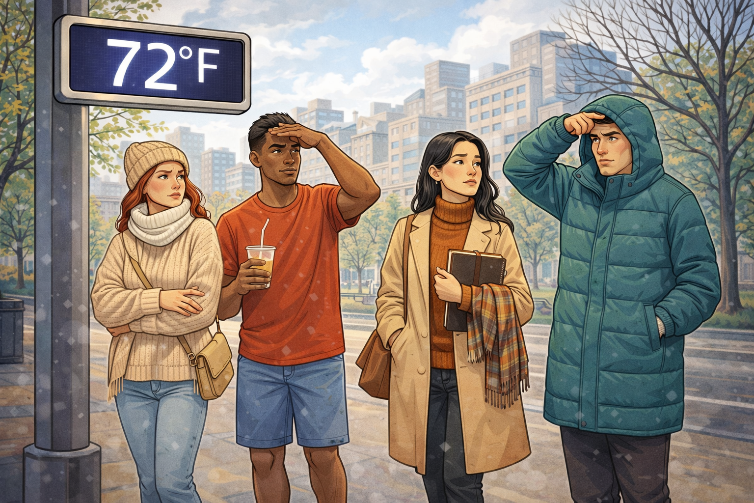 In cities and suburbs alike, people routinely dress for weather that does not quite exist — or at least not in the way they imagine it. Call it invisible weather: the set of expectations, habits and visual cues that shape what we wear, often more powerfully than the actual temperature.